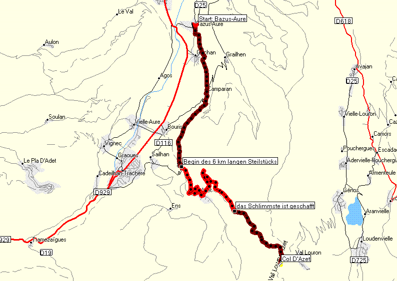 Col d'Azet Westauffahrt ab Bazus-AureBei unserem