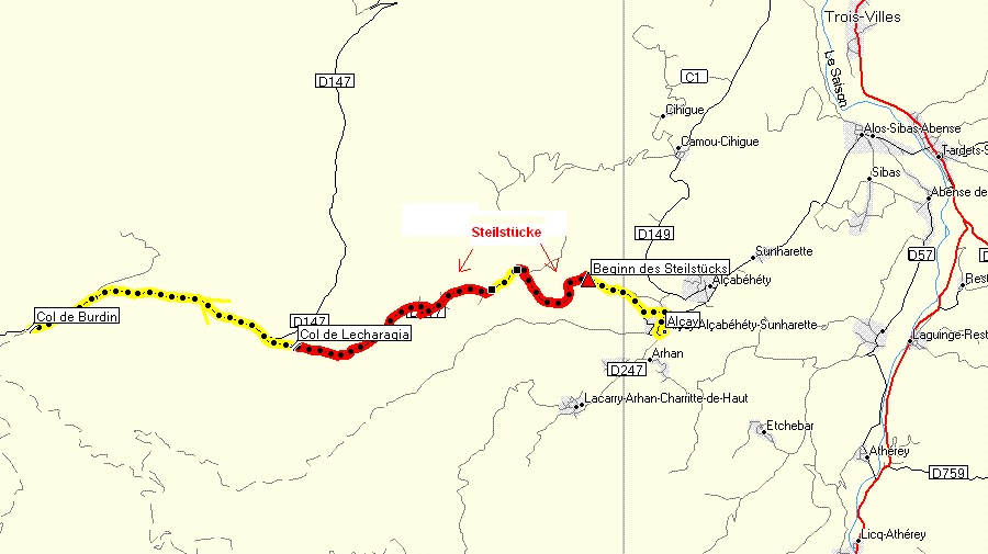Ostauffahrt in dem kleinen Dorf Alcabèhèty-Sunharette. Dieser Ort